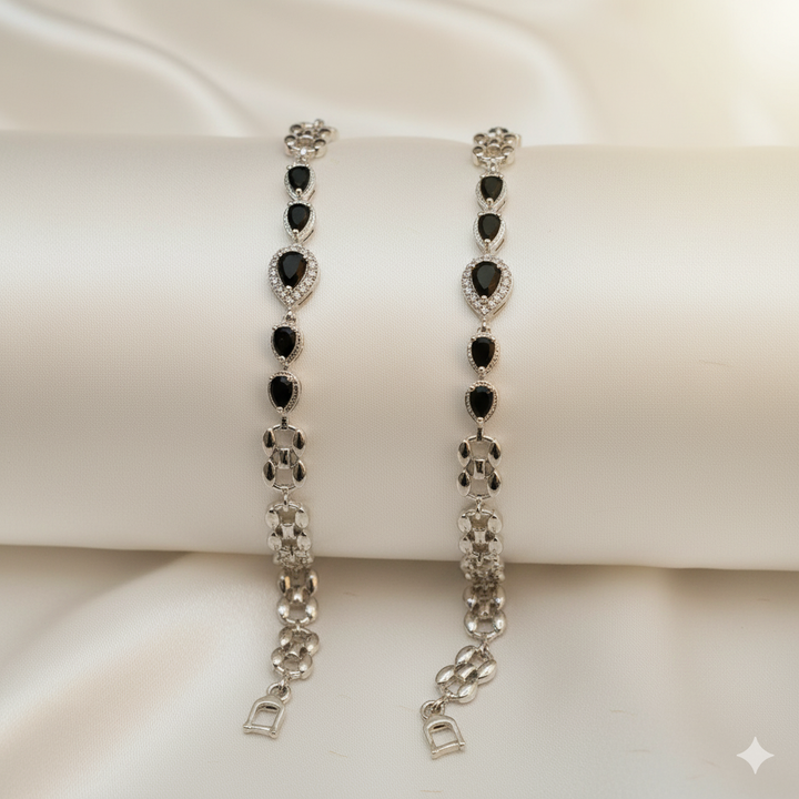 Elegant Black Heart Stone Silver Bracelets for Women