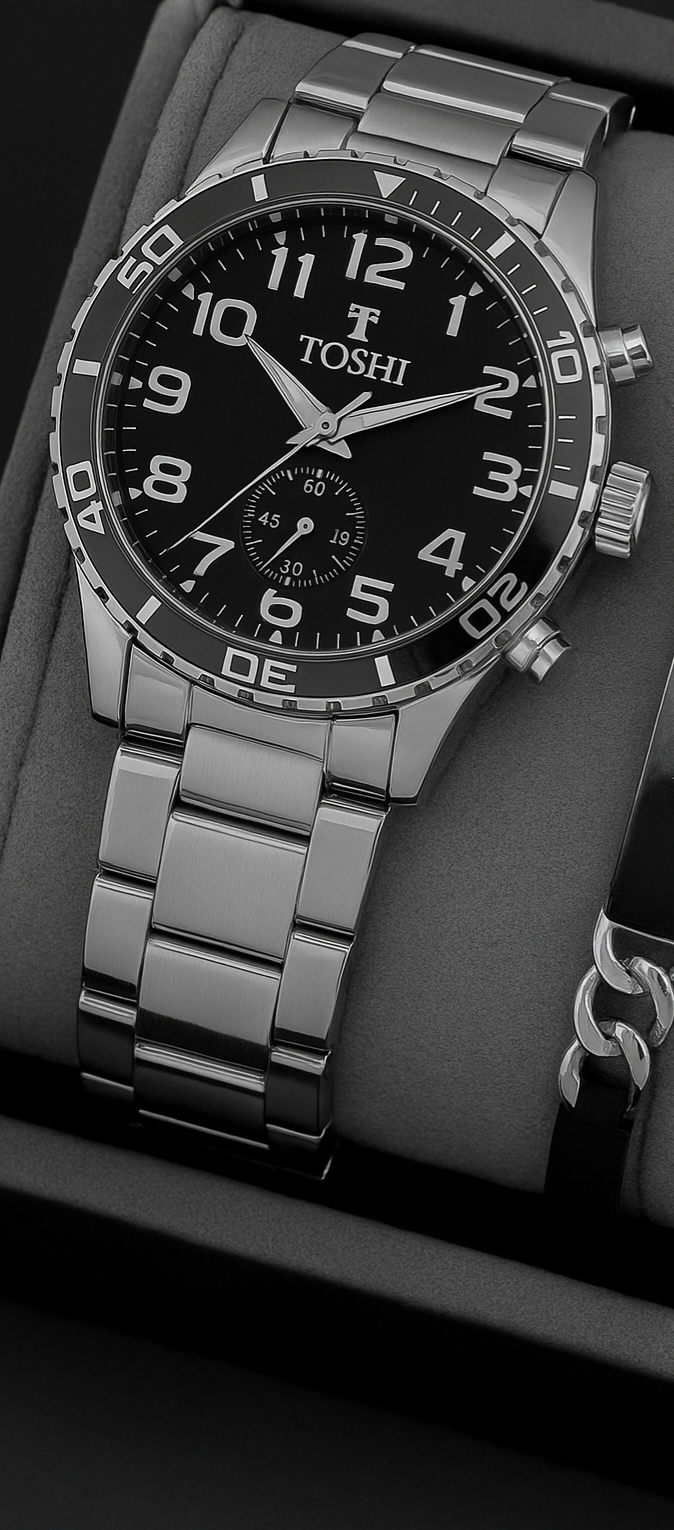 Upgrade your style with this sleek men’s watch paired with a matching bracelet. Designed for modern men, this set combines durability and elegance for everyday wear or special occasions.