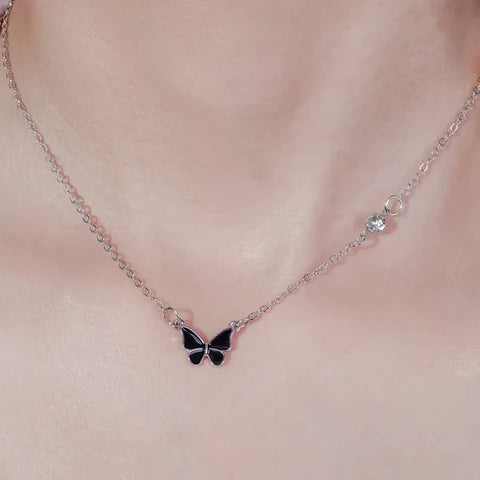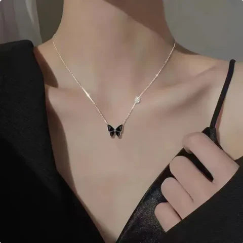 Discover the perfect blend of sophistication and charm with our Black Butterfly Pendant Necklace. This light luxury jewellery piece is designed to add a touch of personality and elegance to any outfit.