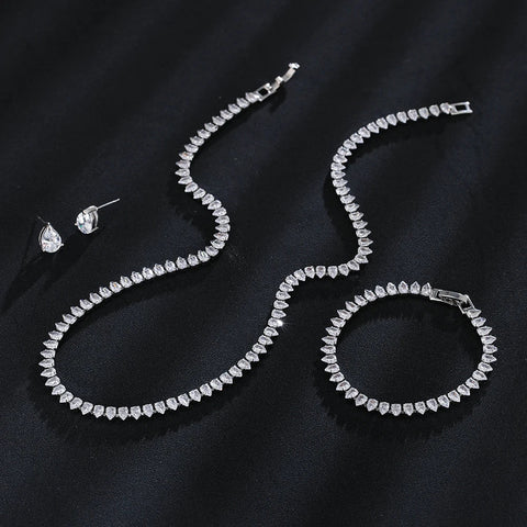 Elegant Teardrop Zirconia Jewelry Set – Necklace, Bracelet & Earrings