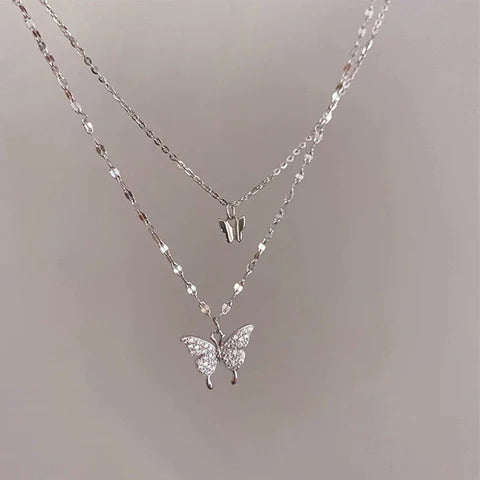 Luxury Silver Double Butterfly Necklace Pendant